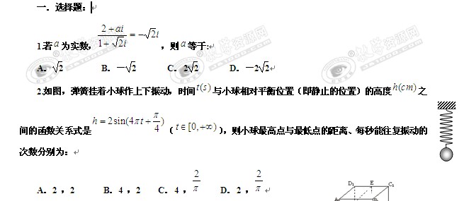 河南省汤阴一中2010届高三下学期第四周周练(数学理)