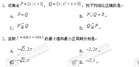 北京市西城区2010届高三抽样测试(数学理)(高三一模)
