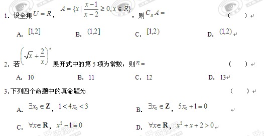 宁夏2010年高考等值诊断网上阅卷联合考试(数学理)