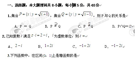 广东省高考《考试大纲》2010年调研模拟考试(数学理)