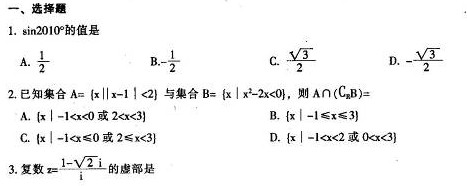 四川省广元市高中2010届高三二诊(数学理)扫描版