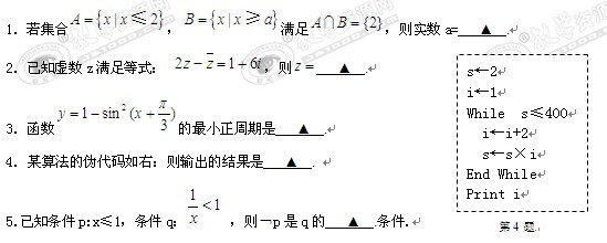 江苏省南通市2010届高三模拟卷(数学)