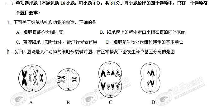 广东省揭阳市2010届高三第二次模拟(理综生物)