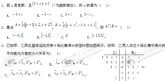安徽省宿州市2010届高三第三次教学质量检测(数学理)