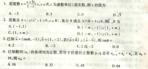 山东省潍坊市2010年高考适应性训练A(数学文)扫描版