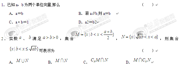 2010年全国大联考(大纲)高考预测试卷(数学理)