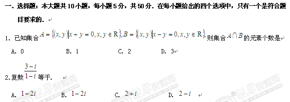 陕西省扶风县2010届高三下学期模拟试题(一)(数学理)