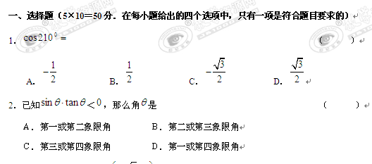 广东省湛江二中09-10学年高一下学期期中测试(数学必修4)