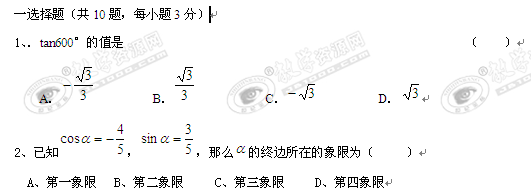 湖南省浏阳一中09-10学年高一下学期段考试题(数学)