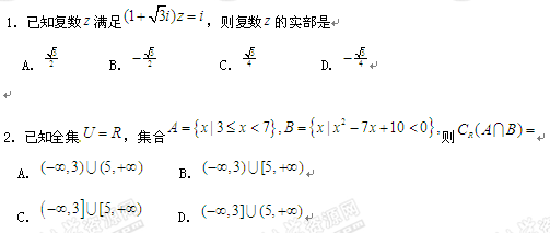 陕西省西工大附中2010届高考第九次适应性训练试题(数学理)