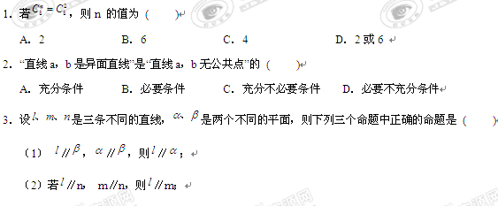 四川省成都市七校协作体09-10学年高二下学期期中考试(数学文)
