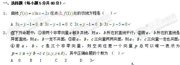 黑龙江省牡丹江一中09-10学年高二下学期期中考试实验班(数学理)