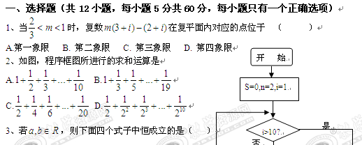 黑龙江省牡丹江一中09-10学年高二下学期期中考试实验班(数学文)