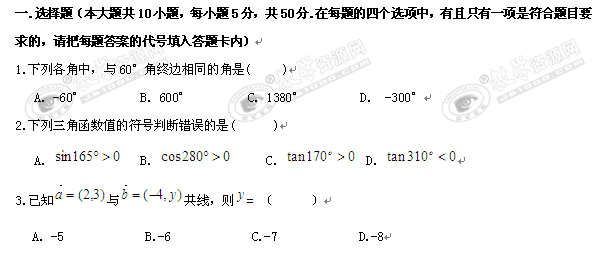 广东省湛江一中09-10学年高一下学期期中考试试题(数学)