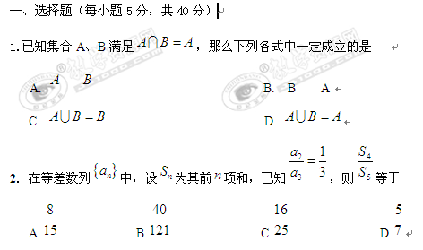 广东省东莞市2010届高三模拟试题(三)(数学理)