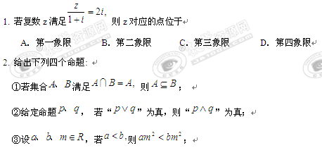 湖北省大冶一中2010届高三模拟考试(数学理)