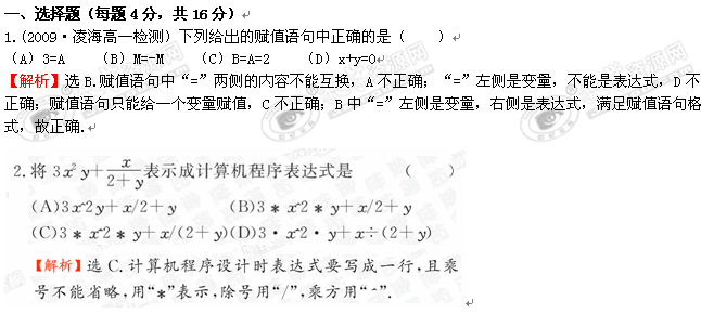 [精练精析]1.2.1《输入语句、输出语句和赋值语句》(人教A版必修3)