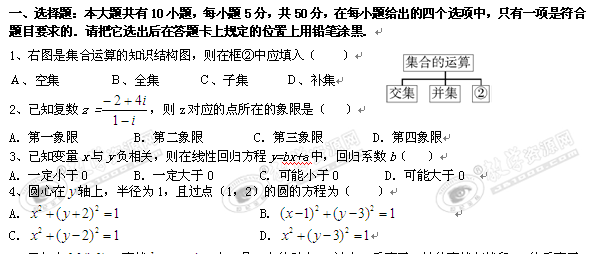 广东省澄海中学09-10学年高二下学期期中考试(数学文)