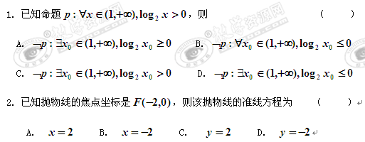 浙东北三校09-10学年高二下学期期中联考(数学文)