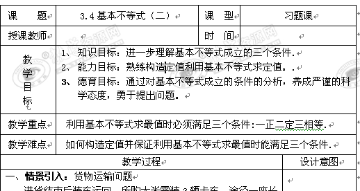 数学:《基本不等式(二)》教案(新课标人教A版必修5)