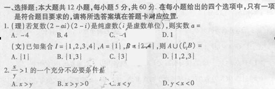 贵州省贵阳市2010年高三适应性考试二(数学)扫描版