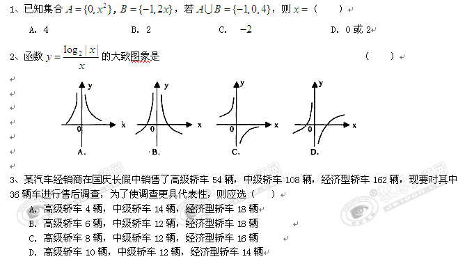 四川省南充高中2010届高三5月适应性考试(数学文)
