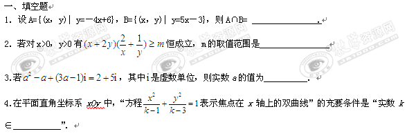 江苏省湖西中学2010届高三高考打靶试题(数学)