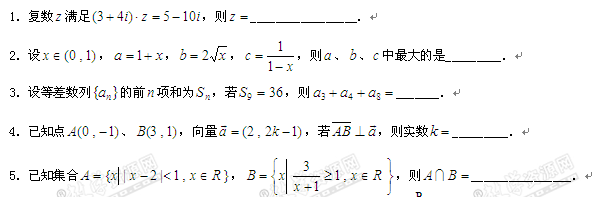上海市嘉定区2010届高三第三次质量调研考试(数学文)