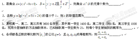 江苏省南通中学2010届高三最后10天冲刺 2(数学)