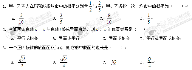 重庆市开县中学09-10学年高二下学期期中联考(数学理)