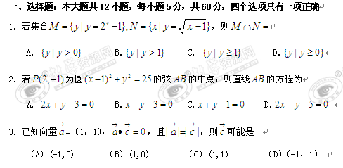贵州省遵义市2010年高考模拟试题一(数学文)