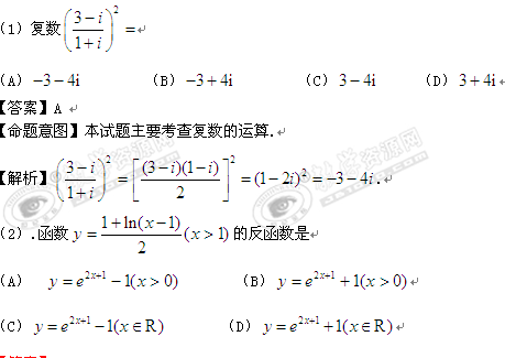 2010年普通高等学校招生全国统一考试(全国卷II)(数学理)解析版