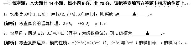 2010年普通高等学校招生全国统一考试(江苏卷)(数学)解析版
