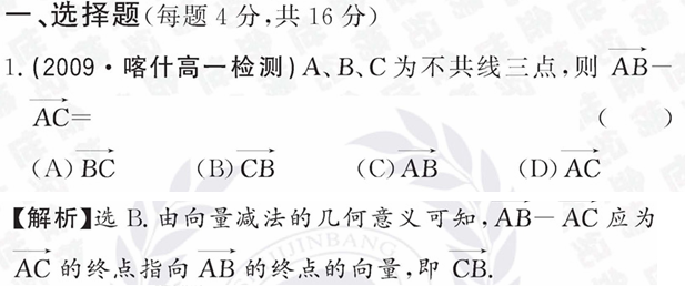 [精练精析]2.2.2向量减法运算及其几何意义(人教A版必修四)