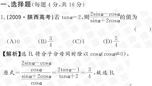 [精练精析]3.1同角三角函数的基本关系(北师大版必修四)