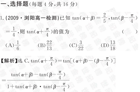 [精练精析]3.2.3两角和与差的正切函数(北师大版必修四)