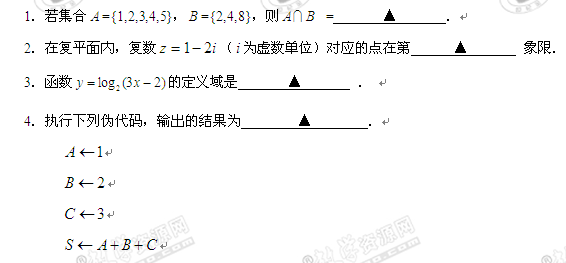 江苏省泰州市09-10学年高二下学期期末考试(数学文)