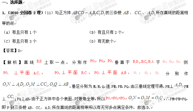 2011年高考数学复习最新3年高考2年模拟:第8章 立体几何 第三节 空间向量在立体几何中的应用