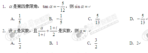 2007年普通高等学校招生全国统一考试(全国卷Ⅰ)(数学理)word版含答案