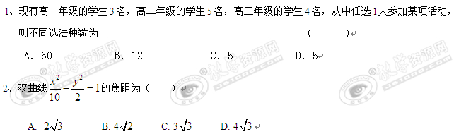 广东省珠海一中09-10学年高二下学期期末考试(数学理)