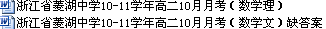 [打包下载]浙江省菱湖中学10-11学年高二10月月考(数学文理卷)