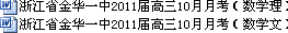 [打包下载]浙江省金华一中2011届高三10月月考(数学文理卷)