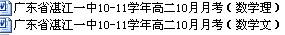 [打包下载]广东省湛江一中10-11学年高二10月月考(数学文理卷)