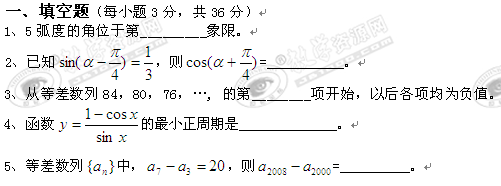 上海交大附中10-11学年高二上学期摸底考试(数学)