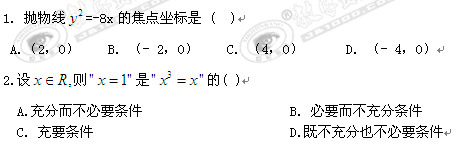 河北省存瑞中学10-11学年高二上学期第二次月考(数学理)缺答案