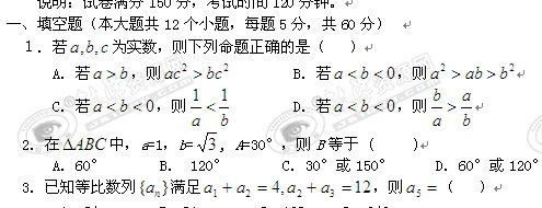 河南省许昌市10-11学年高二上学期部分重点中学期中联考(数学文)