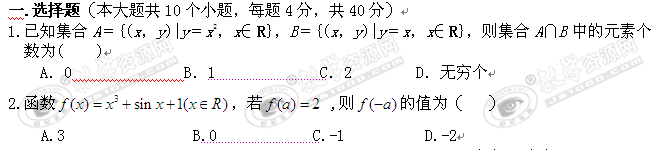 陕西省西安铁一中2011届高三上学期第一次月考(数学理)