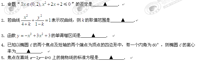 江苏省丹阳高级中学10-11学年高二上学期期中考试(数学文)