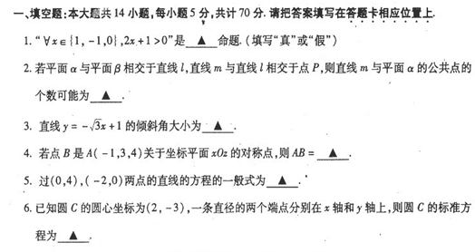 江苏省徐州市10-11学年高二上学期期中考试试题(数学文)扫描版