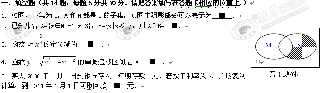 江苏省宿迁中学10~11学年高一上学期期中考试(数学)